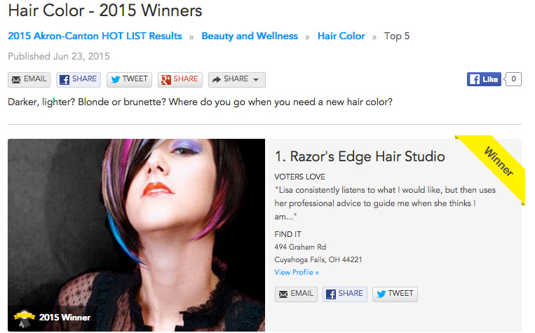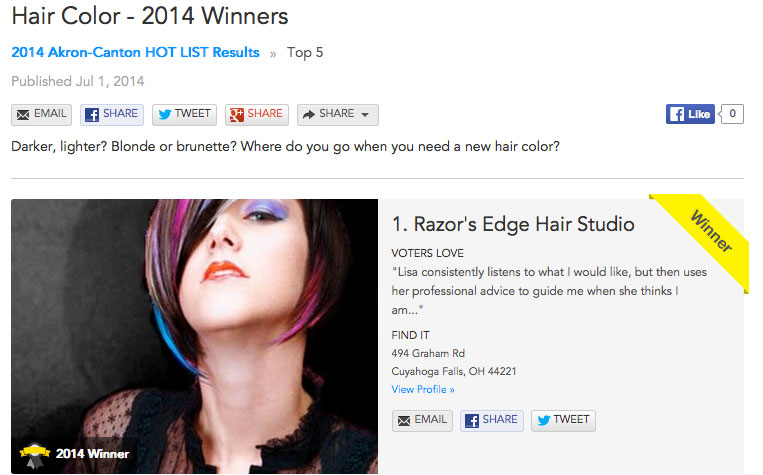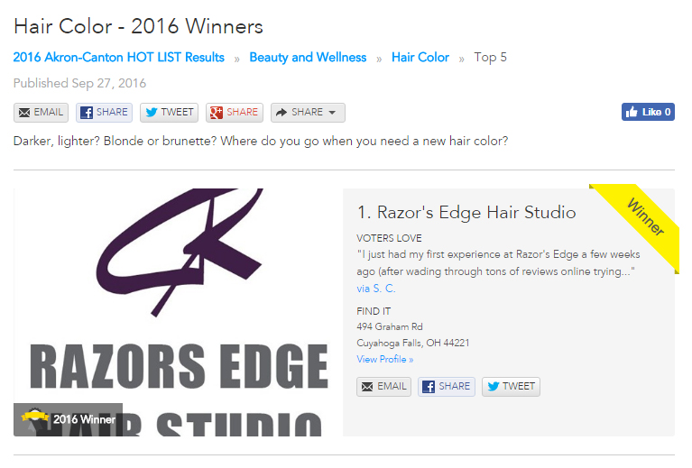 We specialize in Razor cutting to achieve the latest styles. Whether in the Akron, Cuyahoga Falls, or Stow area of Ohio, Razors Edge Hair Studio is the hair salon of choice.